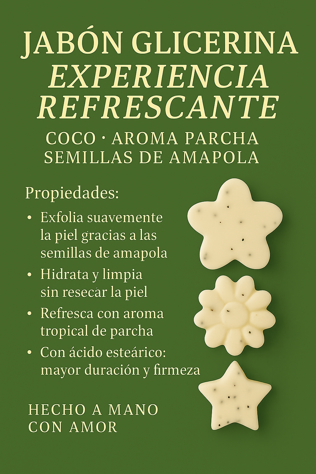 🧼 Jabón Glicerina Coco Parcha con Semillas de Amapola