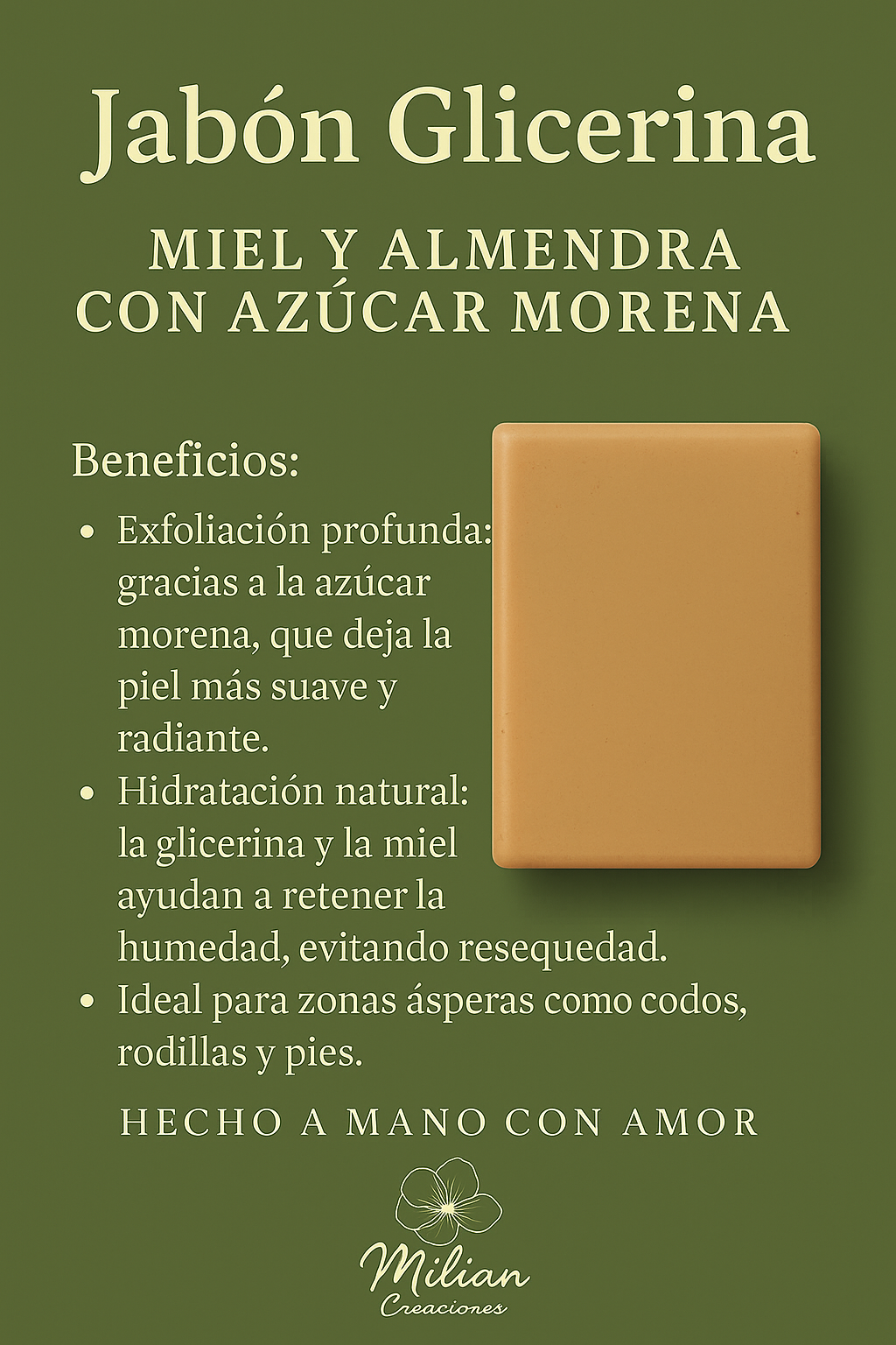 JABÓN GLICERINA MIEL Y ALMENDRA CON AZÚCAR MORENA